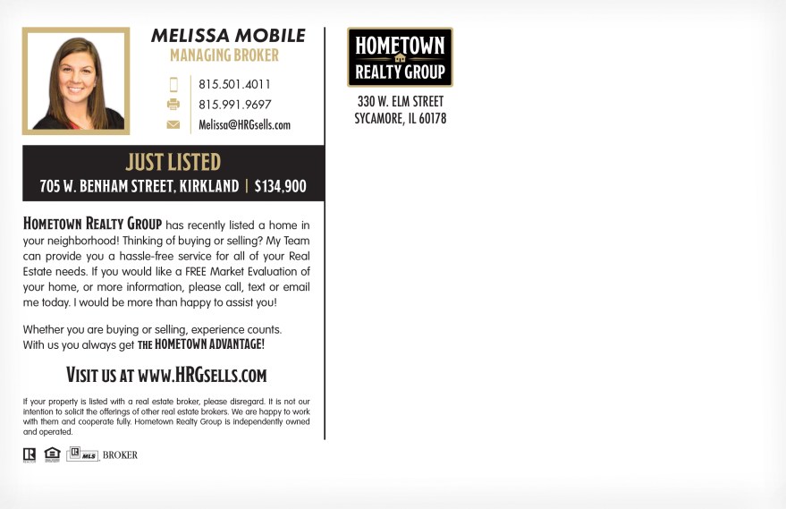 HRG – Just Listed Postcard Back | Client: Hometown Realty Group